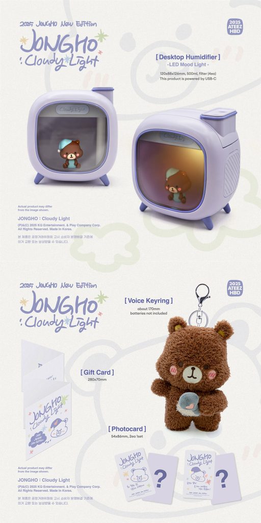 Oficjalny produkt 2025 ATEEZ HBD JONGHO Cloudy Light. Produkt będzie miał swoją premierę w Korei 18 grudnia 2025r. Zawartość prezentowana na zdjęciu.