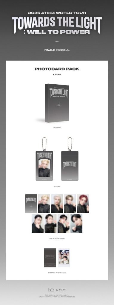 Oficjalny produkt 2025 ATEEZ WORLD TOUR TOWARDS THE LIGHT WILL TO POWER FINALE IN SEOUL PHOTOCARD PACK. W zestawie znajduje się: Holder 1szt., Photocard (1 zestaw 8szt.) oraz 1szt. Instant Photo.