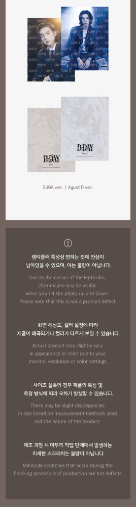 Oficjalny produkt Agust D D-DAY TOUR Lenticular Photo (SUGA ver.). Produkt miał swoją premierę w Korei 1 sierpnia 2023r.