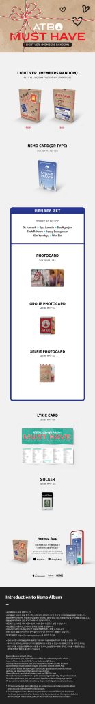 Oficjalny album MUST HAVE kpopowego zespołu ATBO w edycji Nemo Album w dwóch wersjach do wyboru. Album miał swoją premierę 27 listopada 2023 roku.