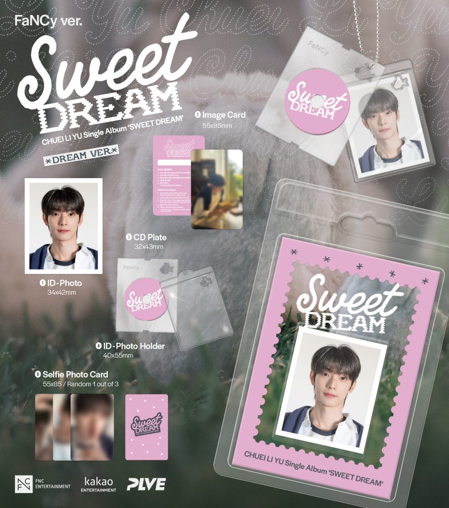 Oficjalny album Single Album SWEET DREAM od CHUEI LI YU w edycji FaNCy w losowej wersji (w komentarzu do zamówienia możesz wpisać ranking wersji (od najbardziej pożądanej do najmniej) wyślemy konkretną wersję w oparciu o Twój ranking i dostępność wersji na magazynie. W przypadku zakupu 2szt. albumu zostaną wysłane różne wersje). Album miał swoją premierę 3 grudnia 2025 roku.