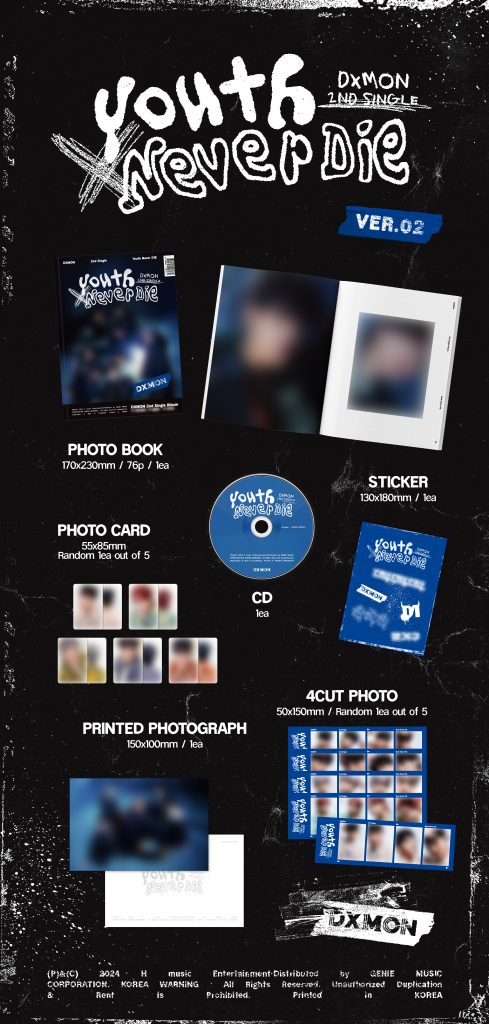 Oficjalna płyta 2nd Single Album Youth Never DIE kpopowego zespołu DXMON w dwóch wersjach do wyboru. Album miał swoją premierę 21 października 2024 roku.