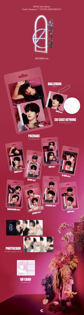 Oficjalny album 2nd Album 소화(韶華) 2장:청춘 결핍 Youth Chapter 2 : YOUTH DEFICIENCY kpopowego zespołu EPEX w edycji Keyring w losowej wersji (w komentarzu do zamówienia możesz wpisać ranking wersji (od najbardziej pożądanej do najmniej) wyślemy konkretną wersję w oparciu o Twój ranking i dostępność wersji na magazynie). Album miał swoją premierę 5 listopada 2024 roku.