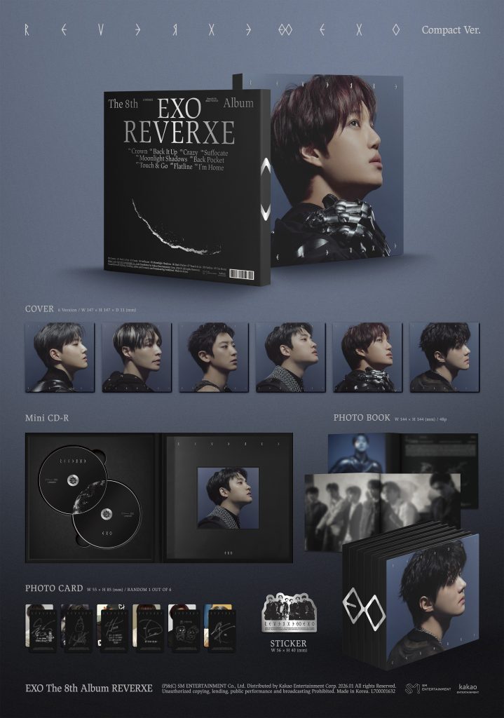 Oficjalna płyta 8th Album REVERXE kpopowego zespołu EXO w edycji Compact w sześciu wersjach do wyboru. Album miał swoją premierę 19 stycznia 2026 roku.