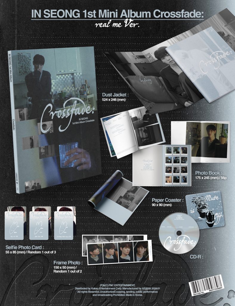 Oficjalna płyta 1st Mini Album Crossfade: od IN SEONG z kpopowego zespołu SF9 w losowej wersji (w komentarzu do zamówienia możesz wpisać ranking wersji (od najbardziej pożądanej do najmniej) wyślemy konkretną wersję w oparciu o Twój ranking i dostępność wersji na magazynie. W przypadku zakupu 2szt. albumu zostaną wysłane różne wersje). Album miał swoją premierę 14 stycznia 2026 roku.