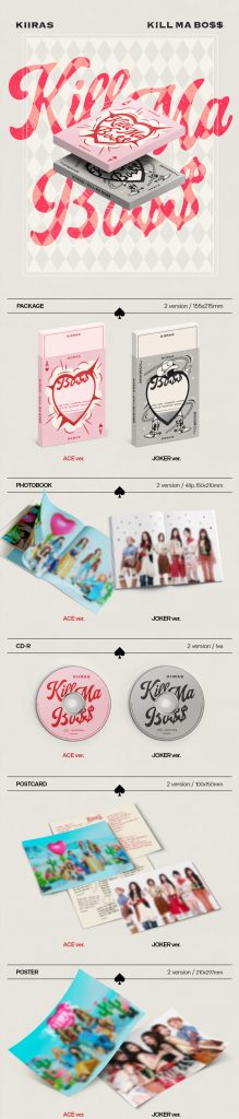 Oficjalna płyta 1st Mini Album KILL MA BO$$ kpopowego zespołu KIIRAS w dwóch wersjach do wyboru. Album miał swoją premierę 9 czerwca 2025 roku.