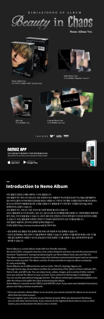 Oficjalny album EP Album Beauty in Chaos od KIM JAE JOONG w edycji Nemo Album. Album miał swoją premierę 19 maja 2025 roku.