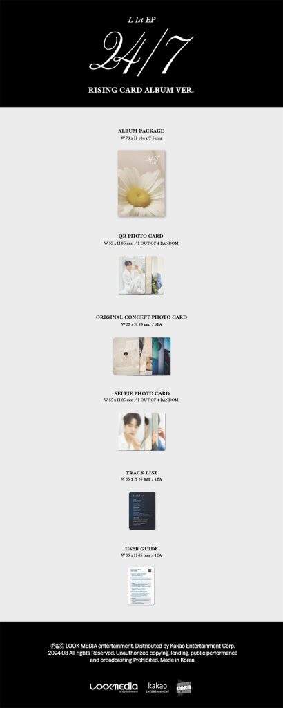 Oficjalny album 1st EP Album 24/7 od L Kim Myung Soo z kpopowego zespołu Infinite w edycji RISING. Album miał swoją premierę 5 sierpnia 2024 roku.