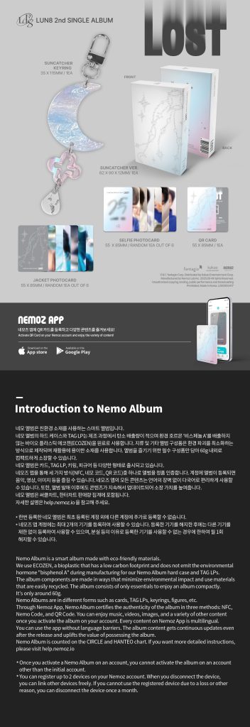 Oficjalny album 2nd Single Album LOST kpopowego zespołu LUN8 w edycji NEMO SUNCATCHER Ver. Album miał swoją premierę 17 września 2025 roku.