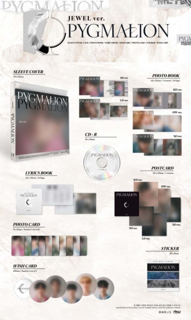 Oficjalna płyta PYGMALION kpopowego zespołu ONEUS w edycji JEWEL w pięciu wersjach do wyboru. Album miał swoją premierę 8 maja 2023 roku.