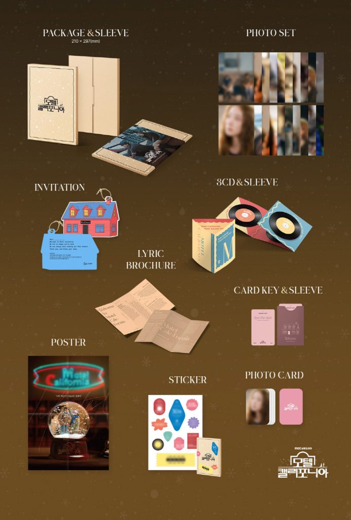 Oficjalna płyta O.S.T z dramy Motel California 모텔 캘리포니아 w wersji CD. Album miał swoją premierę 8 kwietnia 2025 roku.