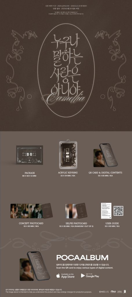 Oficjalny album Solo Single Album 누구나 말하는 사랑은 아니야 Camellia od XION z kpopowego zespołu ONEUS w edycji POCAALBUM. Album miał swoją premierę 16 czerwca 2025 roku.