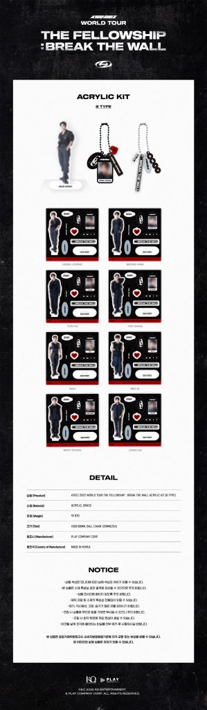 Oficjalny produkt ATEEZ THE FELLOWSHIP: BREAK THE WALL Acrylic Kit w ośmiu wersjach do wyboru. Produkt miał swoją premierę w Korei 25 października 2022r.