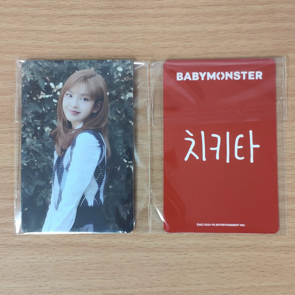 BABYMONSTER BABYMONS7ER (YG TAG ALBUM VER.) PHOTOCARD TYPE B CHIQUITA – dodatek dodawany w preorderze do zakupu SETu albumów BABYMONSTER BABYMONS7ER (YG TAG ALBUM VER.). Kupujesz 1szt. photocard w prezentowanym na zdjęciu wzorze.