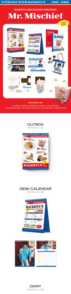Oficjalny produkt BAEKHYUN 2025 SEASON’S GREETINGS Mr. Mischief. Produkt będzie miał swoją premierę w Korei 18 grudnia 2024r.