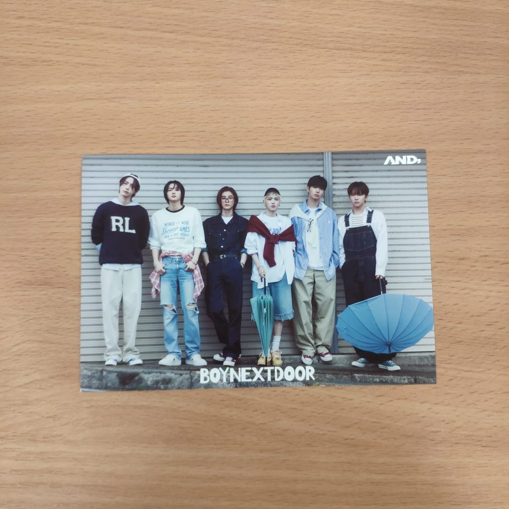 Dodatek dodawany w preorderze przez Universal Music Shop do zakupu albumu BOYNEXTDOOR JP 1st Single AND,. Kupujesz 1szt. postcard w prezentowanym na zdjęciu wzorze.
