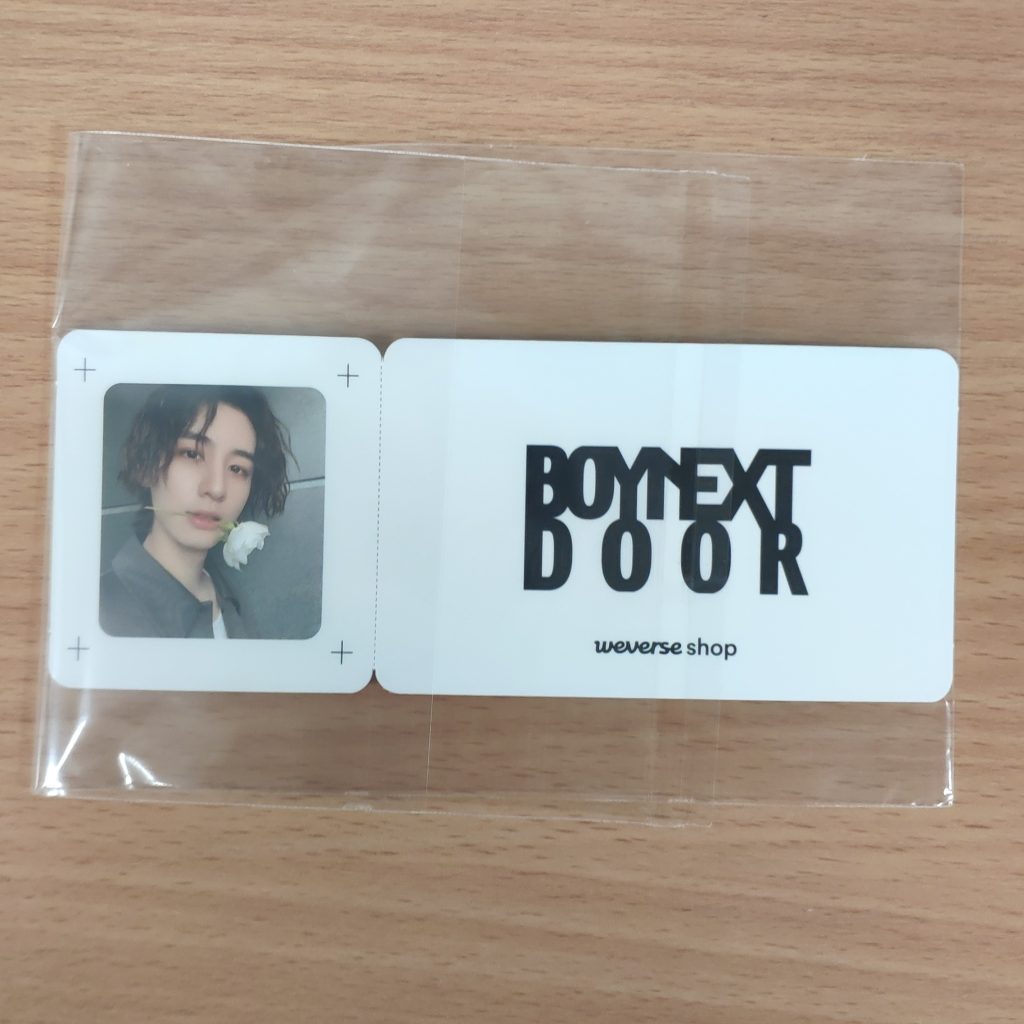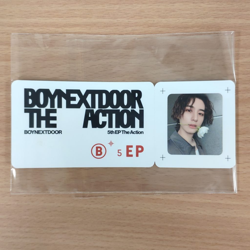 Dodatek dodawany w preorderze przez Weverse Shop do zakupu albumu BOYNEXTDOOR The Action. Kupujesz 1szt. photo ticket w prezentowanym na zdjęciu wzorze.