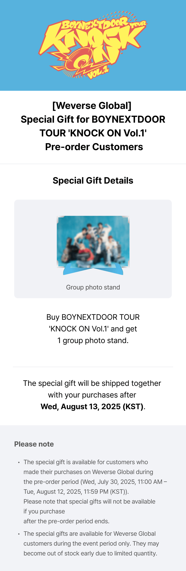 Oficjalny produkt BOYNEXTDOOR TOUR KNOCK ON Vol.1. Produkt będzie miał swoją premierę w Korei 13 sierpnia 2025r. Zawartość prezentowana na zdjęciach.