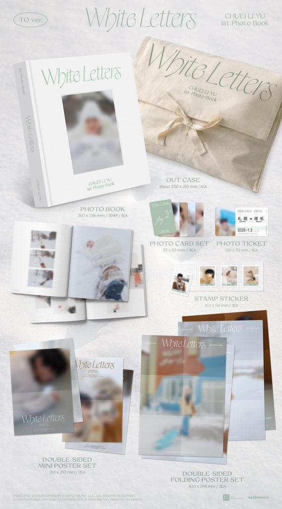 Oficjalny produkt CHUEI LI YU 1st PHOTO BOOK WHITE LETTERS (TO Ver.). Produkt miał swoją premierę w Korei 10 marca 2026r. Zawartość prezentowana na zdjęciach.