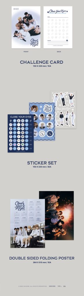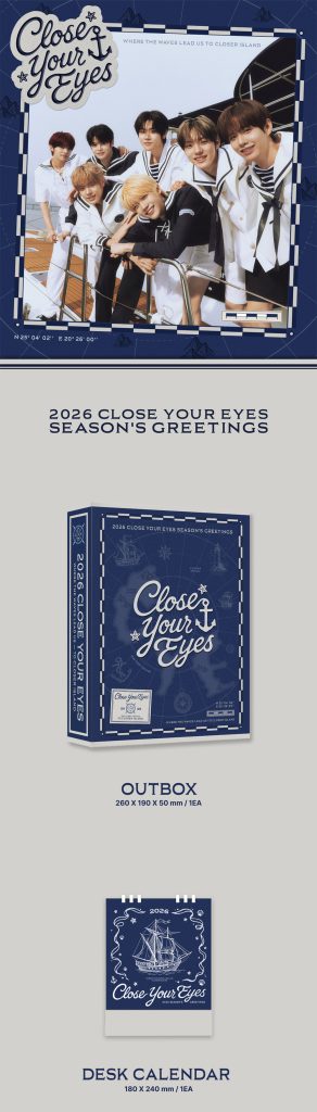 Oficjalny produkt CLOSE YOUR EYES 2026 SEASON’S GREETINGS. Produkt będzie miał swoją premierę w Korei 26 grudnia 2025r. Zawartość prezentowana na zdjęciach.