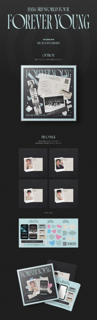 Oficjalny produkt DAY6 3RD WORLD TOUR FOREVER YOUNG Blu-ray. Produkt miał swoją premierę w Korei 27 listopada 2025r. Zawartość prezentowana na zdjęciach.