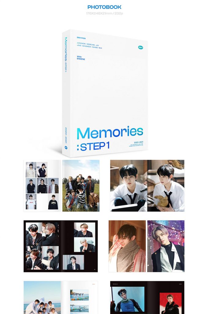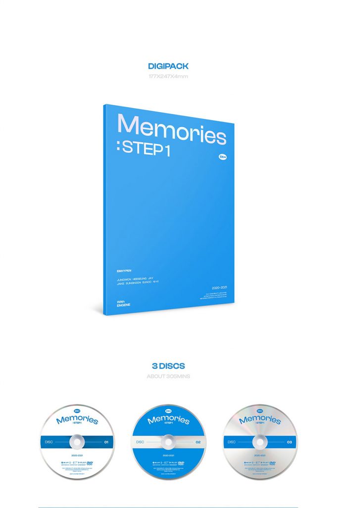 Oficjalne DVD ENHYPEN Memories : STEP 1 DVD od ENHYPEN. Zestaw ma swoją premierę 20 marca 2022r. W skład setu wchodzi m.in. Photobook (232str.), 3 płyty DVD, Accordion Photo (1szt.), Instant Photo (1szt.), Photocard (losowo 1szt. z 7).