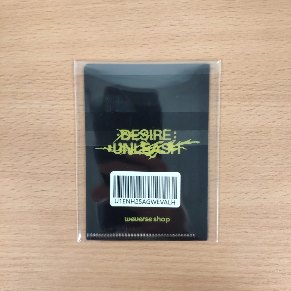 Dodatek dodawany przez Weverse Shop preorderze do zakupu albumu ENHYPEN DESIRE : UNLEASH (Weverse Albums ver.) . Kupujesz 1szt. logo photocard L-type holder w prezentowanym na zdjęciu wzorze.