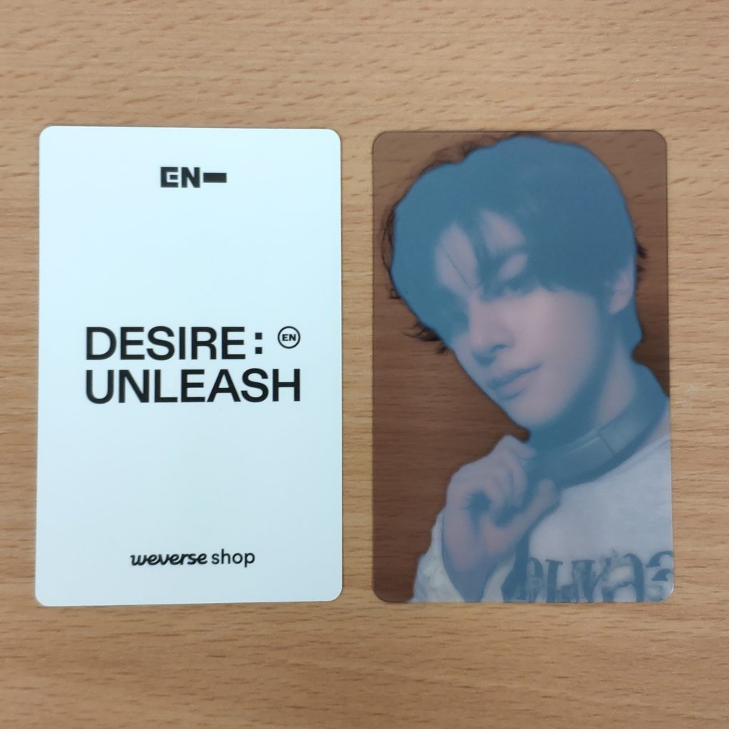 Dodatek dodawany przez Weverse Shop preorderze do zakupu albumu ENHYPEN DESIRE : UNLEASH (ENGENE ver.) . Kupujesz 1szt. unreleased selfie photocard B + 1szt. unreleased selfie transparent photocard B w prezentowanym na zdjęciu wzorze.