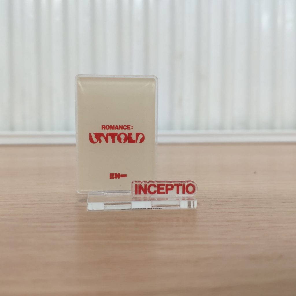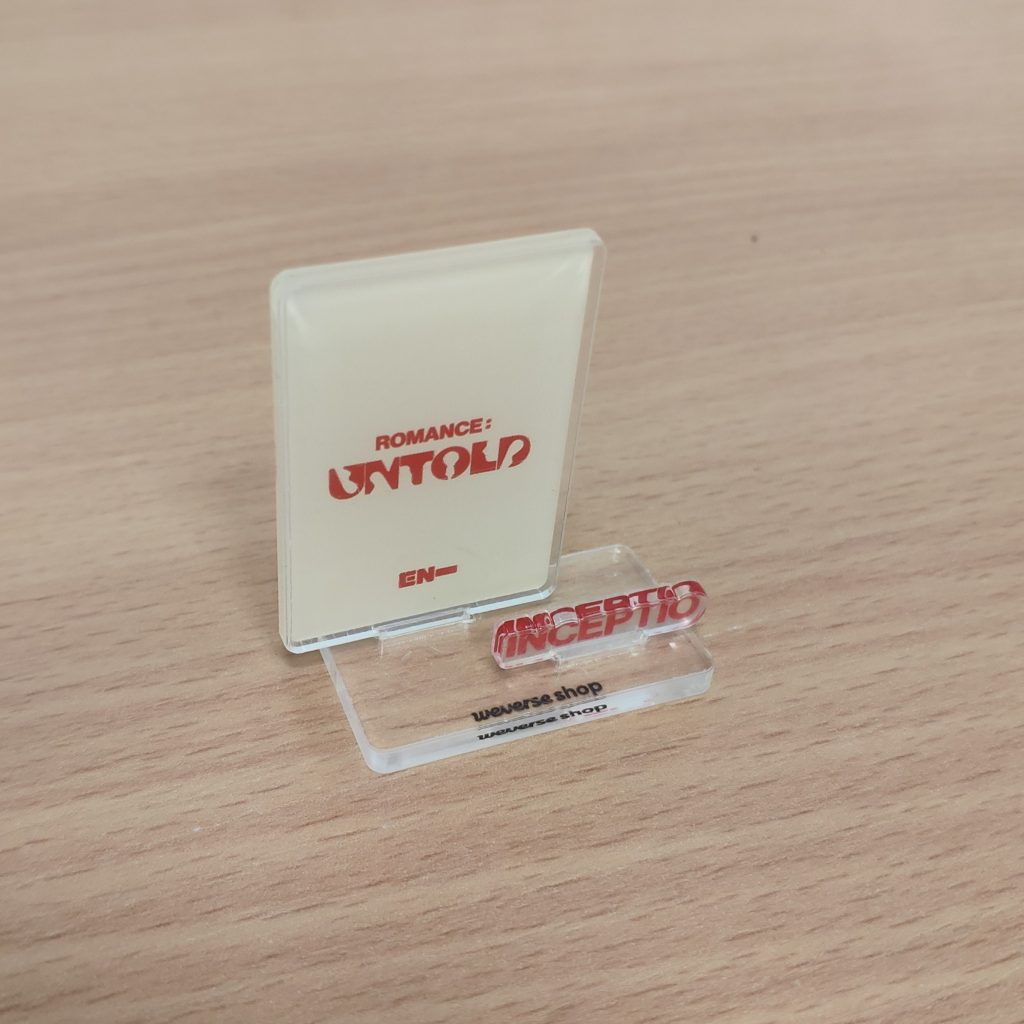 ENHYPEN ROMANCE : UNTOLD WEVERSE POB LOGO MINI PHOTOCARD STAND INCEPTIO – dodatek od Weverse dodawany w preorderze do zakupu albumu ENHYPEN ROMANCE : UNTOLD. Kupujesz 1szt. LOGO MINI PHOTOCARD STAND w wersji INCEPTIO.