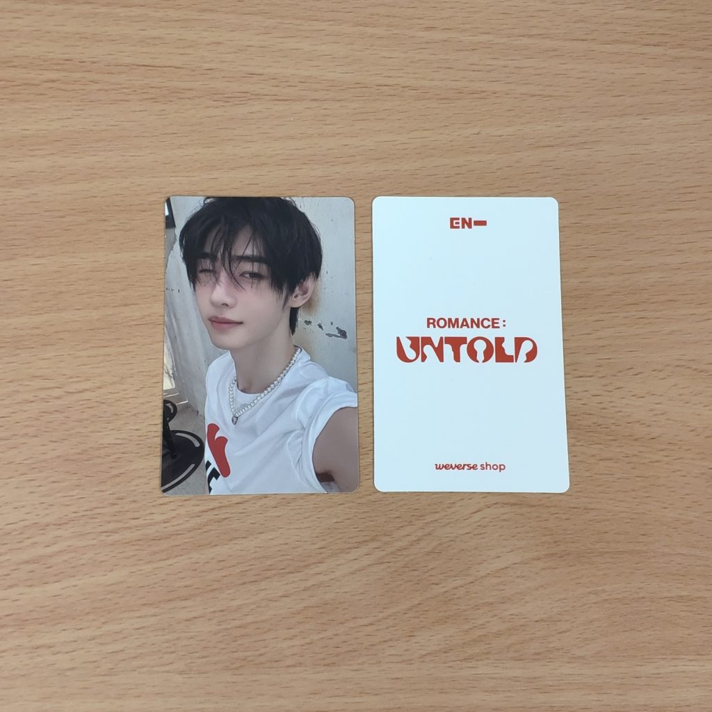 ENHYPEN ROMANCE : UNTOLD WEVERSE POB PHOTOCARD SUNGHOON – dodatek od Weverse dodawany w preorderze do albumu ENHYPEN ROMANCE : UNTOLD. Kupujesz 1szt. photocard z członkiem zespołu: SUNGHOON.