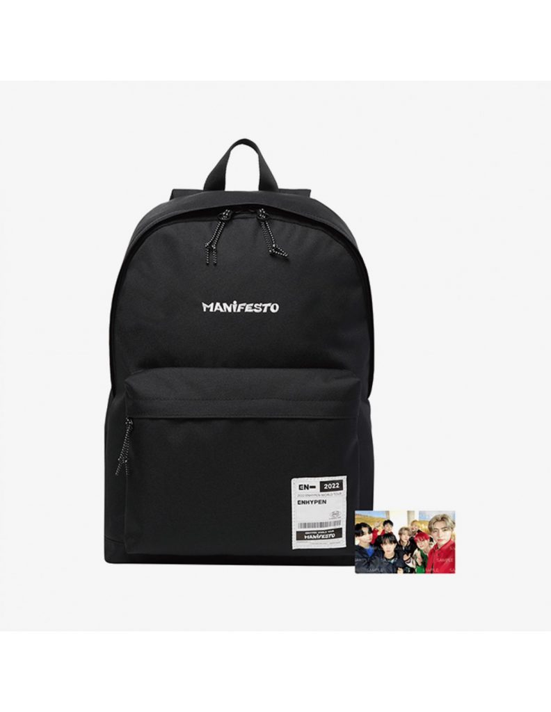 Oficjalny produkt ENHYPEN WORLD TOUR MANIFESTO BACK PACK koreańskiego zespołu ENHYPEN. Produkt ma swoją premierę w Korei 30 sierpnia 2022r. W zestawie plecak oraz 1 grupowa photocard.