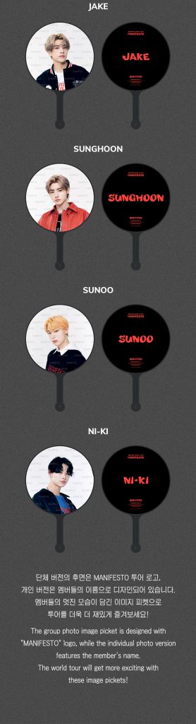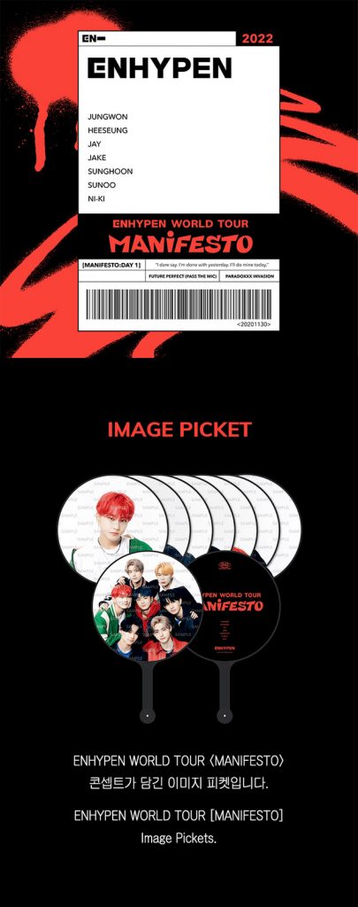 Oficjalny produkt ENHYPEN WORLD TOUR MANIFESTO IMAGE PICKET koreańskiego zespołu ENHYPEN z wybranym członkiem zespołu. Produkt ma swoją premierę w Korei 30 sierpnia 2022r.