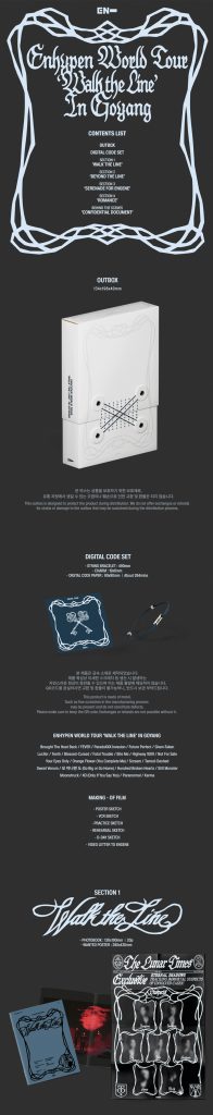Oficjalny produkt ENHYPEN WORLD TOUR ‘WALK THE LINE’ IN GOYANG. Produkt będzie miał swoją premierę w Korei 25 kwietnia 2025r. Zawartość prezentowana na zdjęciach.
