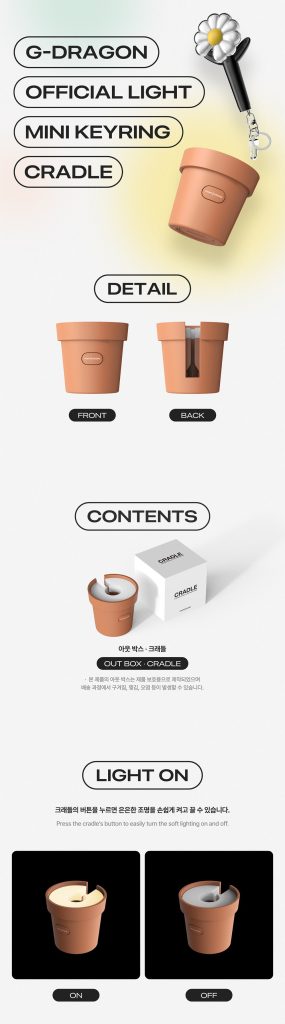 Oficjalny produkt G-DRAGON OFFICIAL MINI LIGHT KEYRING CRADLE. Uwaga! Jest do podstawka do MINI LIGHT KEYRING (małej, breloczkowej wersji lightsticka)!