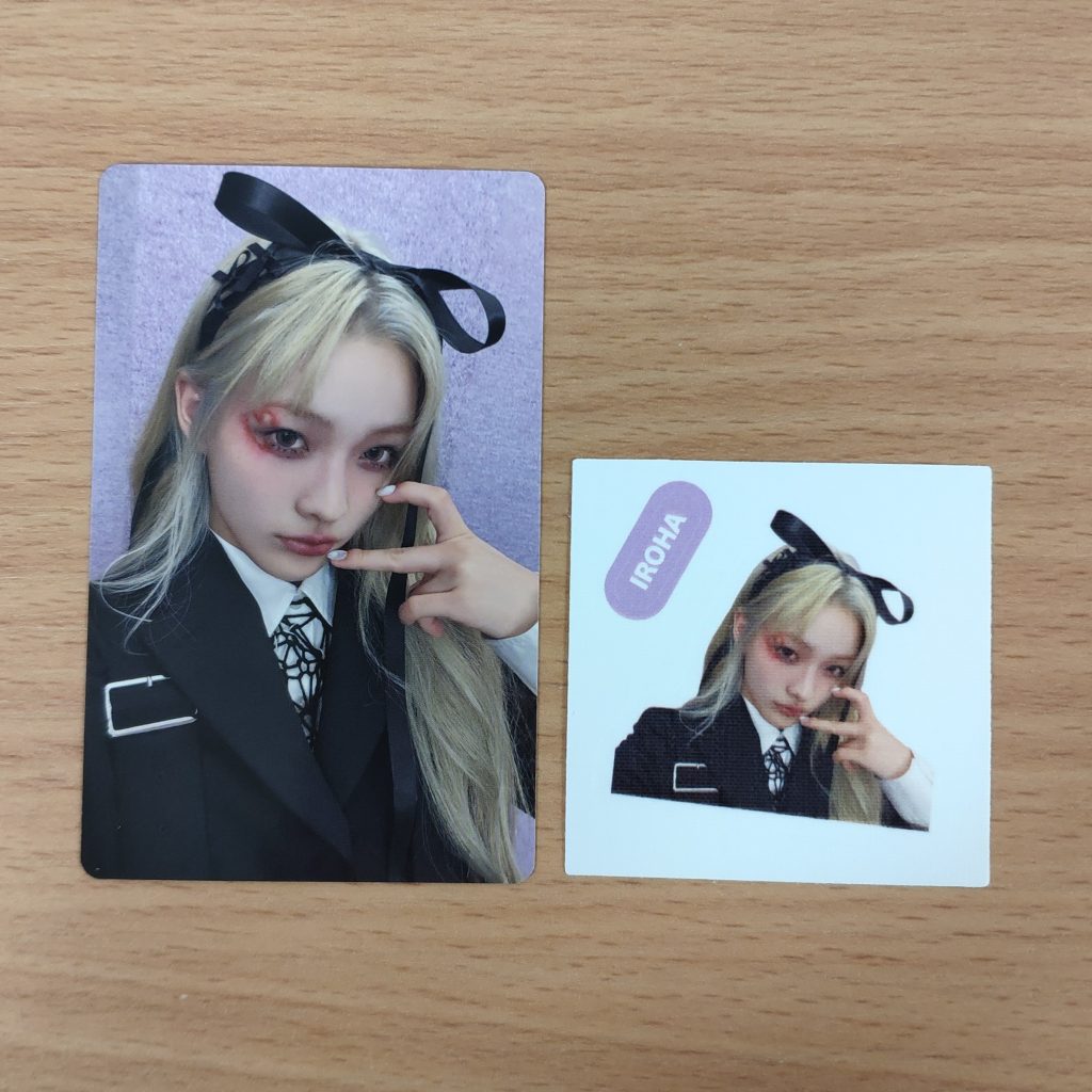 ILLIT I’LL LIKE YOU (GLLIT Ver.) WEVERSE POB PHOTOCARD TYPE B IROHA – dodatek od Weverse dodawany w preorderze do zakupu albumu ILLIT I’LL LIKE YOU (GLLIT Ver.). Kupujesz prezentowany na zdjęciu 1 zestaw składający się z: 1szt. unreleased selfie photocard B + 1szt. unreleased selfie photo sticker.