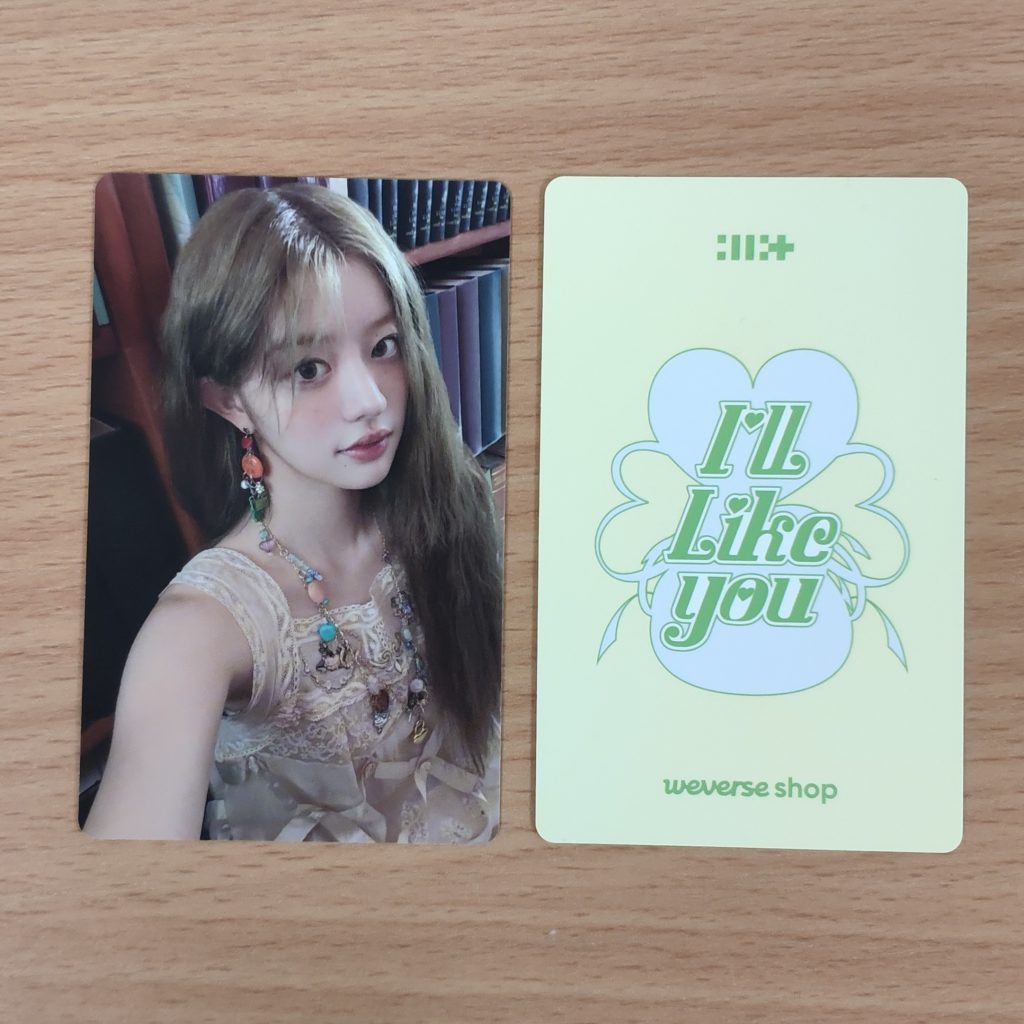 ILLIT I’LL LIKE YOU WEVERSE POB PHOTOCARD TYPE A YUNAH – dodatek od Weverse dodawany w preorderze do zakupu albumu ILLIT I’LL LIKE YOU. Kupujesz prezentowaną na zdjęciu 1szt. unreleased photocard.