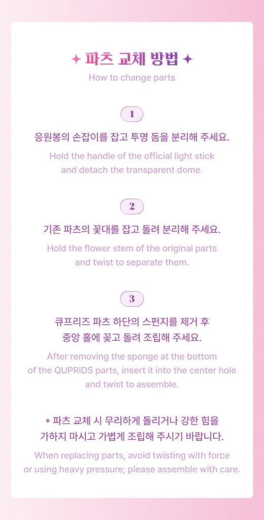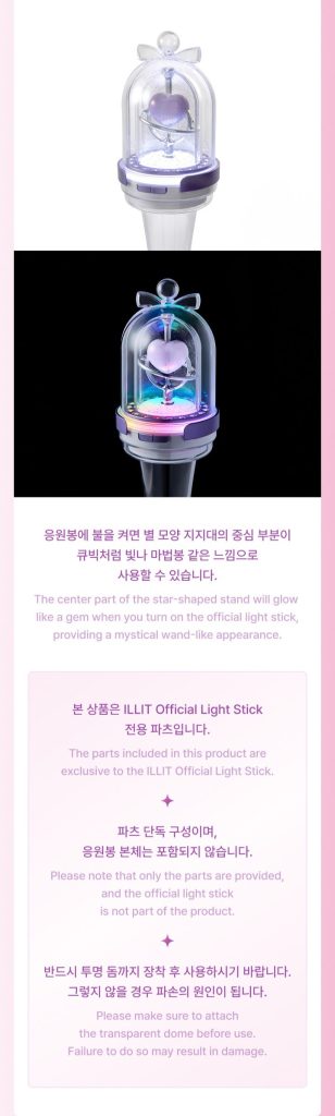 Oficjalny produkt ILLIT Official Light Stick Wand Parts. Produkt będzie miał swoją premierę w Korei 3 marca 2026r. UWAGA! Kupujesz jedynie zamienną nakładkę na lightstick! W zestawie nie znajduje się lightstick! Lightstick dostępny [TUTAJ] (klik)