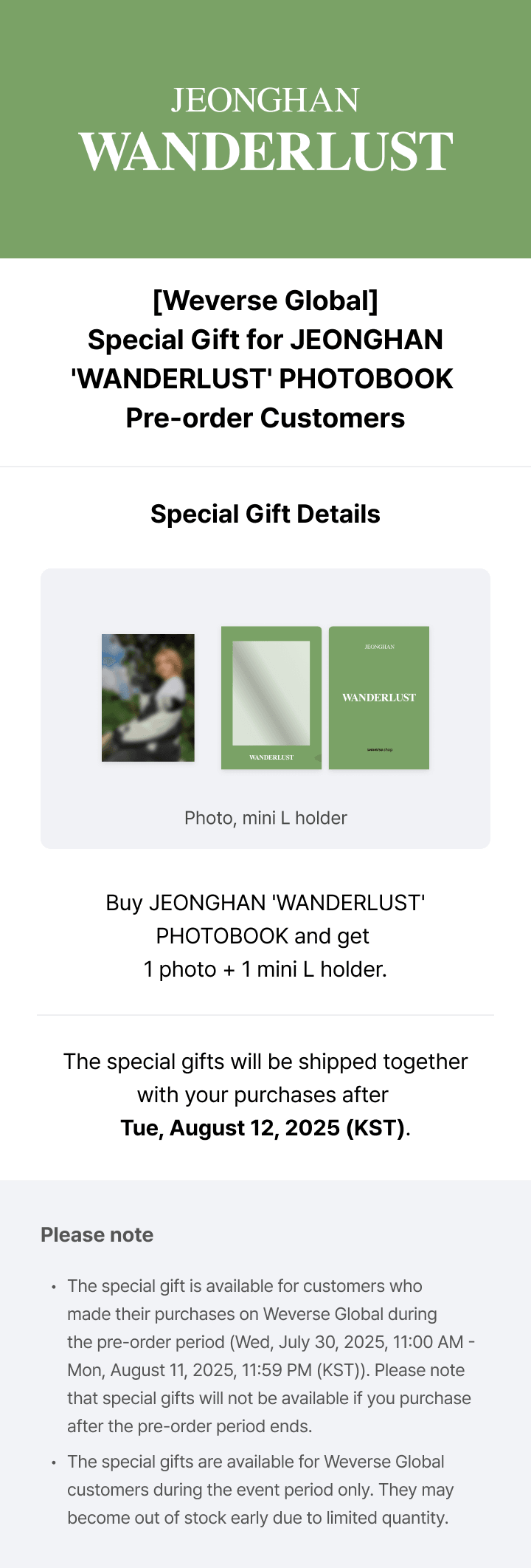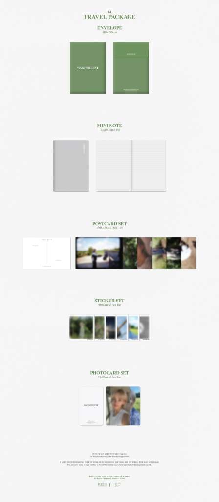 Oficjalny produkt JEONGHAN WANDERLUST PHOTOBOOK. Produkt będzie miał swoją premierę w Korei 14 sierpnia (pierwszy nakład) 5 września (drugi nakład z produkcji) 2025r. Zawartość prezentowana na zdjęciach.