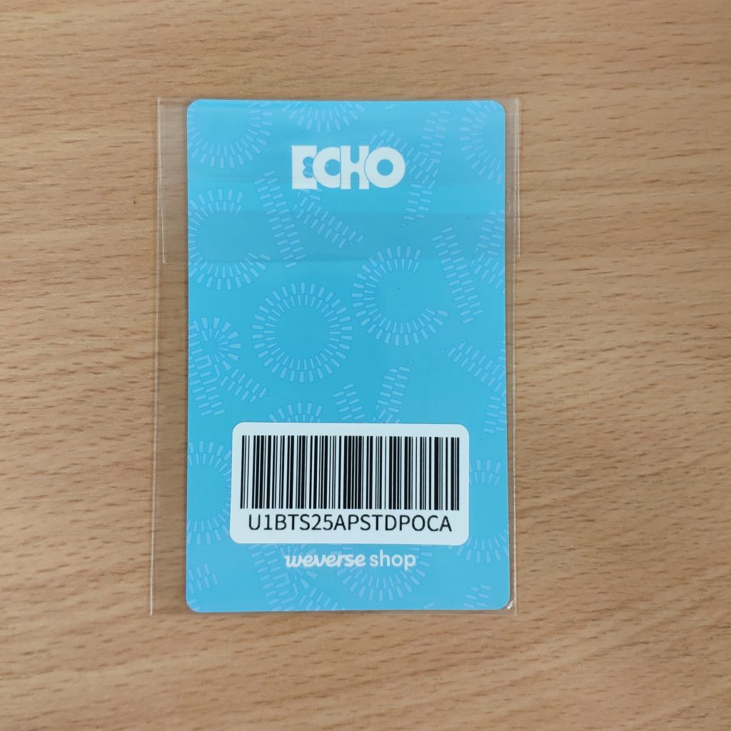 Jin Echo WEVERSE POB PHOTOCARD TYPE A – dodatek od Weverse dodawany w preorderze do zakupu SETu albumu Jin Echo. Kupujesz prezentowaną na zdjęciu 1szt. selfie photocard.