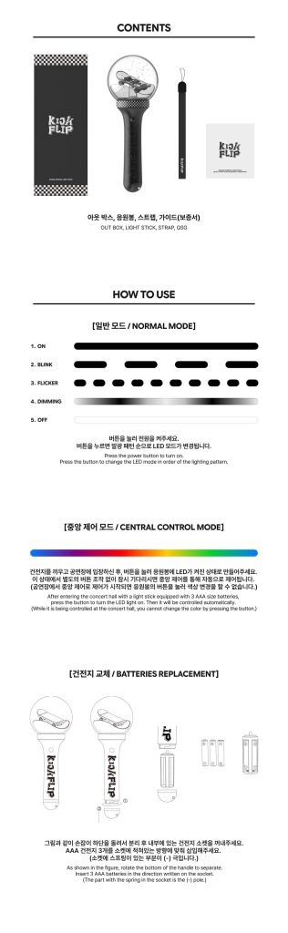 Oficjalny light stick KickFlip Official Light Stick. W zestawie dołączona jest smycz do przyczepienia do lightsticka.