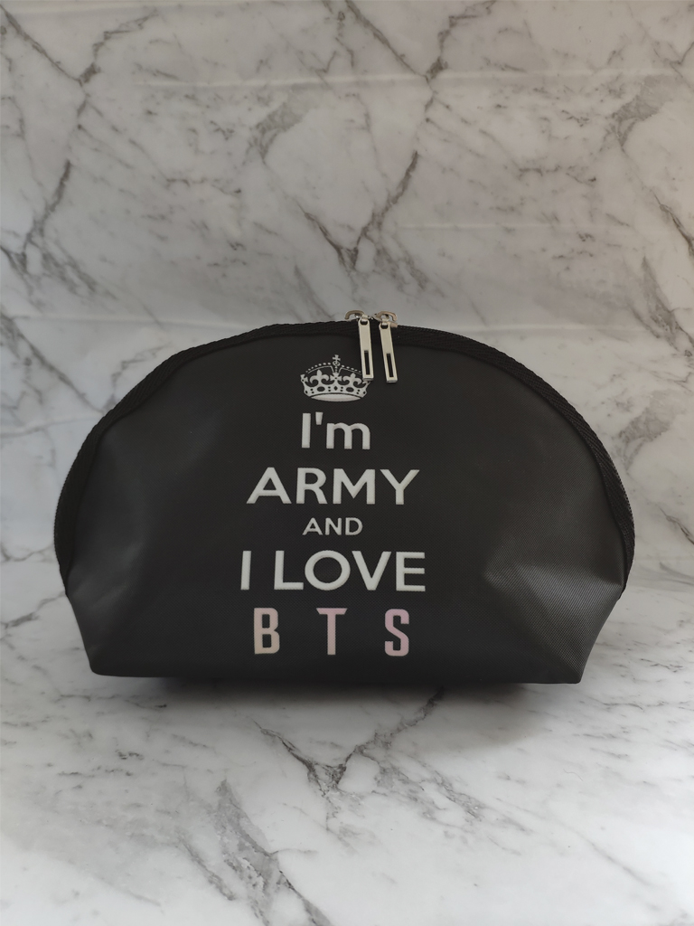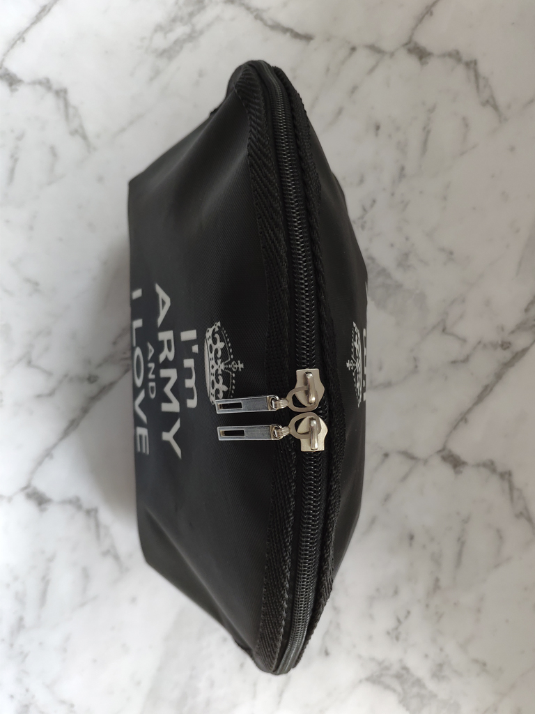 Kosmetyczka z nadrukiem zespołu BTS wykonana z nieprzemakalnego i wytrzymałego materiału. Nadruk zajmuje całą powierzchnię produktu. Wytrzymały suwak pozwala na łatwe otwieranie i zamykanie kosmetyczki 🙂