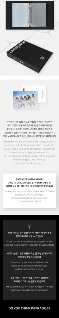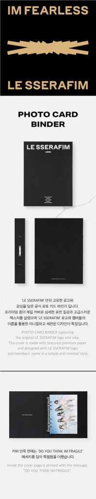 Oficjalny produkt LE SSERAFIM ANTIFRAGILE Photocard Binder. Produkt miał swoją premierę w Korei 27 grudnia 2022r.