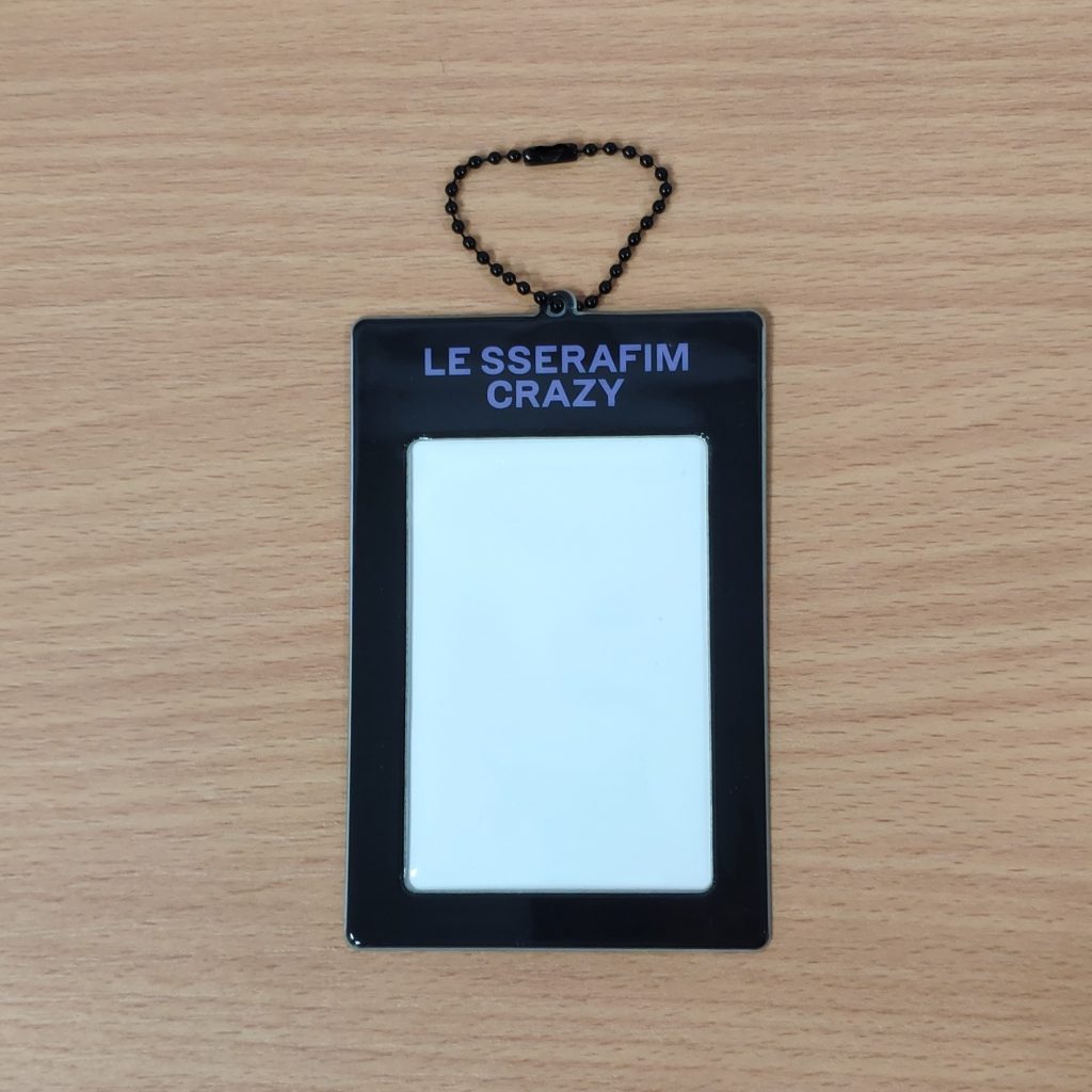 LE SSERAFIM CRAZY WEVERSE POB LOGO PHOTOCARD HOLDER TYPE A – dodatek od Weverse dodawany w preorderze do albumu LE SSERAFIM CRAZY. Kupujesz 1szt. logo photocard holder w widocznej na zdjęciu wersji kolorystycznej.