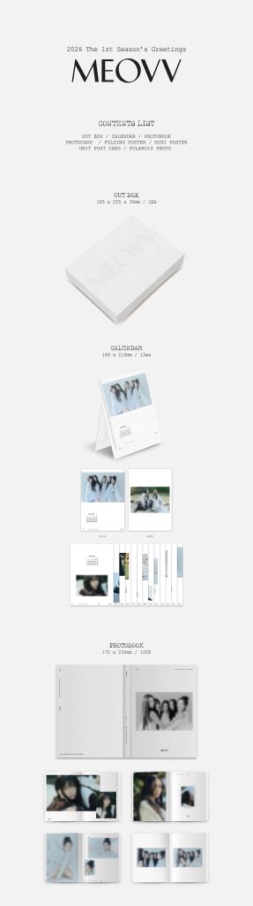 Oficjalny produkt MEOVV 2026 SEASON’S GREETINGS. Produkt będzie miał swoją premierę w Korei 26 stycznia 2026r. Zawartość prezentowana na zdjęciach.