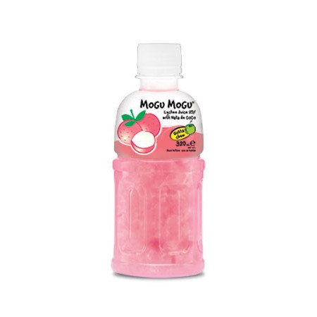 Mogu Mogu Lychee 320ml to napój o smaku liczi z nata de coco, czyli kokosową galaretką. W 25% napój składa się z soku owocowego z liczi, a w kolejnych 25% z galaretki kokosowej. Orzeźwiający, egzotyczny napój prosto z Tajlandii! Przed odkręceniem wstrząśnij butelką! Polecamy pić schłodzony.