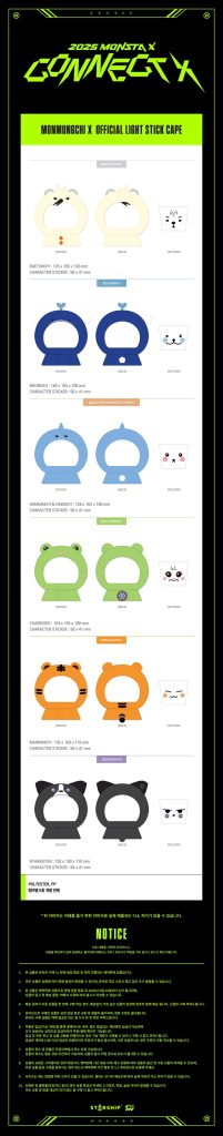 Oficjalny produkt MONSTA X CONNECT X MONMUNGCHI X OFFICIAL LIGHT STICK CAPE. Produkt będzie miał swoją premierę w Korei 25 września 2025r. W zestawie nakładka na lightstick (1szt.) oraz 1szt. naklejki w wybranym wzorze. Uwaga! Kupujesz jedynie nakładkę, w zestawie nie znajduje się lightstick!!