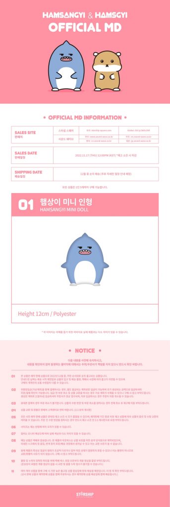 Oficjalny produkt MONSTA X KIHYUN HAMSANGYI Mini Doll. Produkt będzie miał swoją premierę w Korei 26 grudnia 2022r.