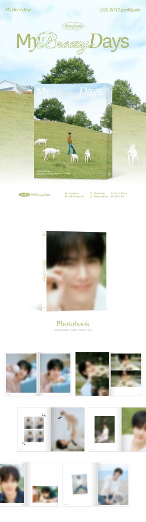 Oficjalny produkt My Dear Days THE BOYZ Photobook YOUNGHOON – My Breezy Days. Produkt będzie miał swoją premierę w Korei 7 listopada 2025r. Zawartość prezentowana na zdjęciach.
