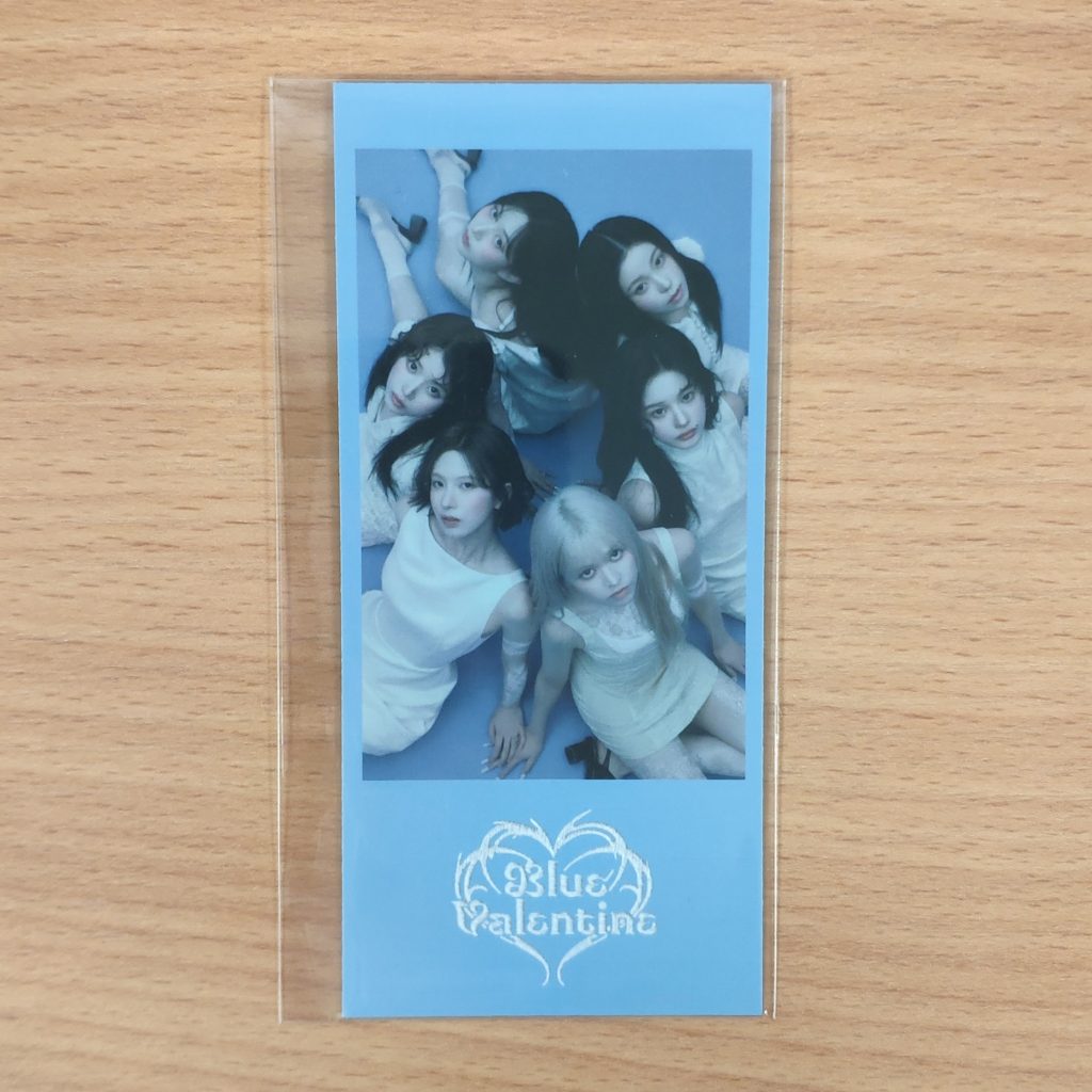 Dodatek od JYP SHOP dodawany w preorderze do SET’u albumów NMIXX Blue Valentine (Platform Album POCAALBUM Ver.). Kupujesz 1szt. photo ticket w prezentowanym na zdjęciu wzorze.