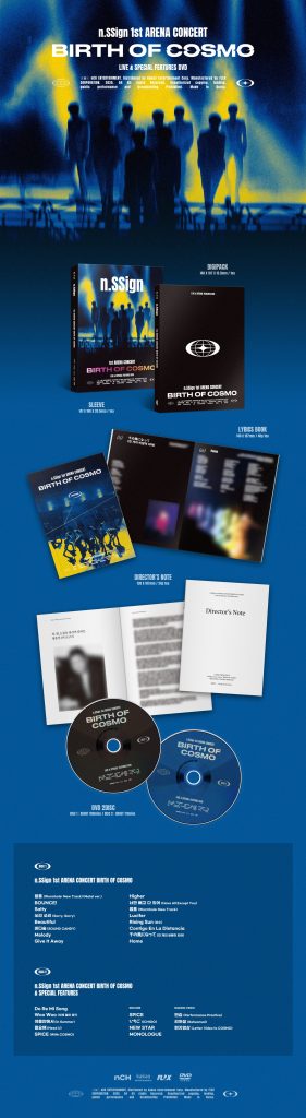 Oficjalny produkt n.SSign 1st ARENA CONCERT BIRTH OF COSMO DVD. Produkt będzie miał swoją premierę w Korei 21 kwietnia 2025r. Zawartość prezentowana na zdjęciach.